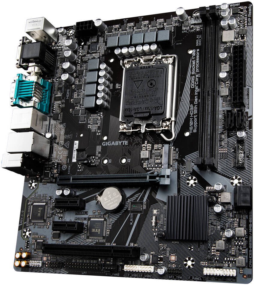 GIGABYTE H610M HD3P Micro ATX LGA 1700 Motherboard, Intel H610 Chipset, 2x DDR5 DIMM Slots, Up to 128GB Max Memory, 1x PCIe 3.0 x4 M.2, 1x PCIe 4.0 x16 Slot, Intel GbE LAN