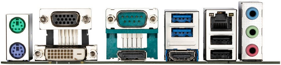 | Back Panel Connectors | PS/2 ports (keyboard/mouse), USB ports, D-Sub, DVI-D, serial port, DisplayPort, HDMI, RJ-45, audio jacks. |