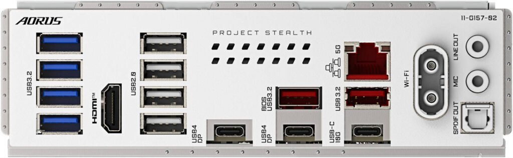 | Back Panel I/O | 1x HDMI, 2x antenna, 2x USB4 Type-C (DP), 1x USB-C 3.2 Gen2, 2x USB 3.2 Gen2 Type-A, 4x USB 3.2 Gen1, 4x USB 2.0, 1x RJ-45, 1x S/PDIF, 2x audio jacks |