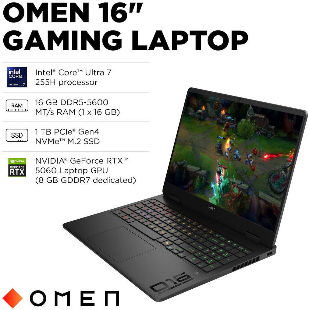 HP OMEN Gaming Laptop, 16″ 2K 144Hz FHD IPS Display, Intel Core Ultra 7 255H, 16GB RAM, 1TB SSD, GeForce RTX 5060 8GB GPU, English Keyboard, Windows 11 Home, Shadow Black