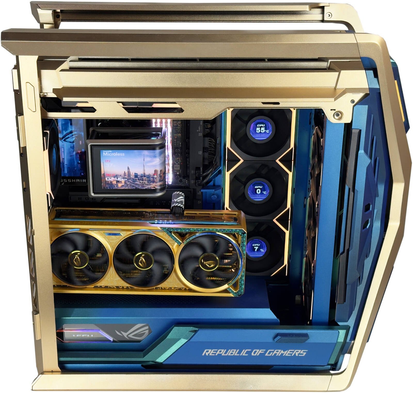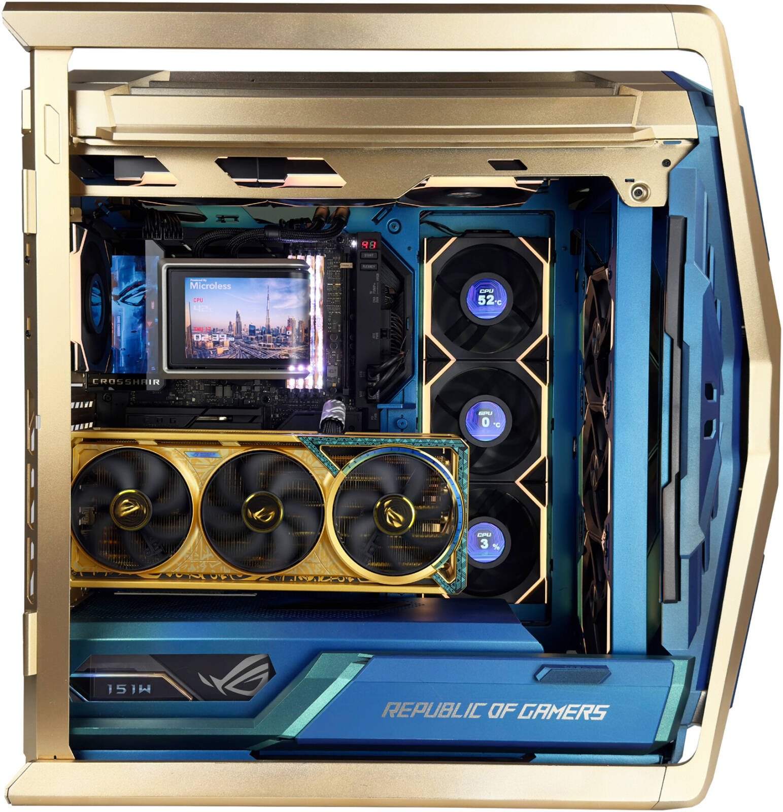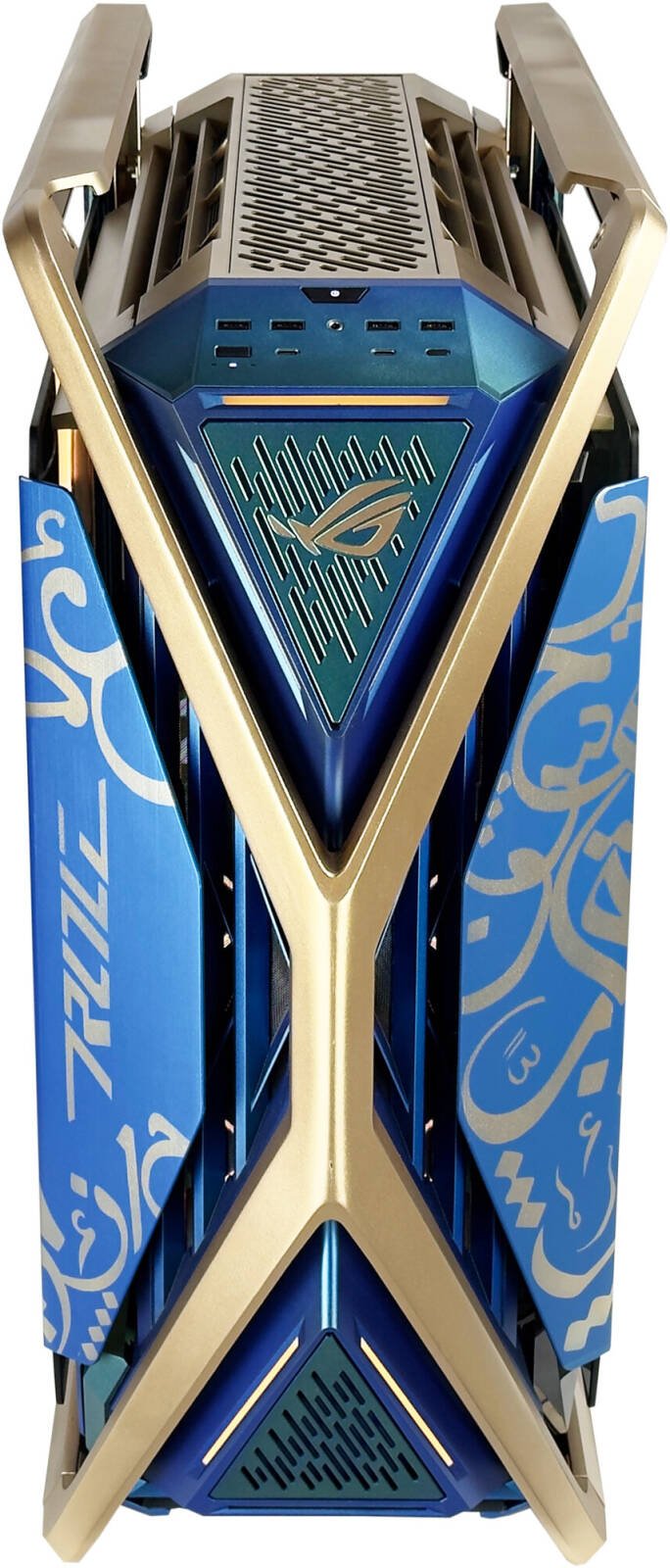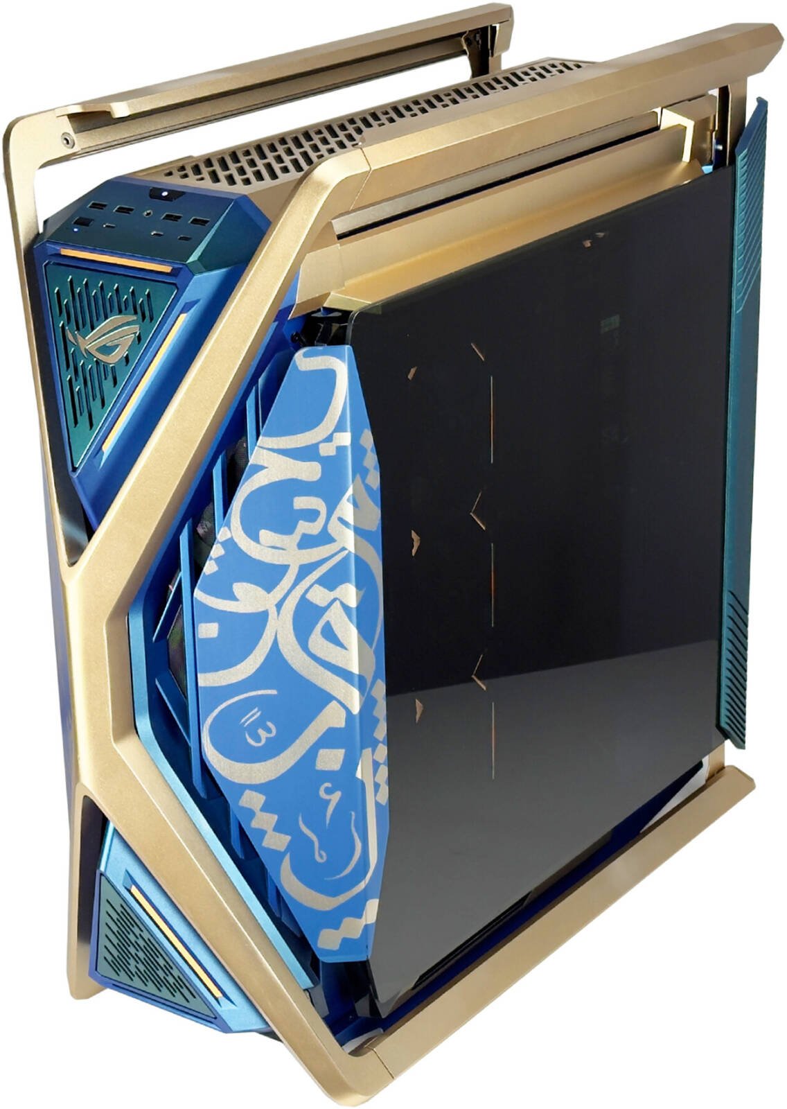 ASUS ROG Hyperion GR701 E-ATX PC Case Dhahab Edition, Tempered Glass Side Panels, Up to 420mm Dual Radiator, 4x 140mm Fans, Metal GPU Holder, ARGB Fan Hub, 60W Fast Charging