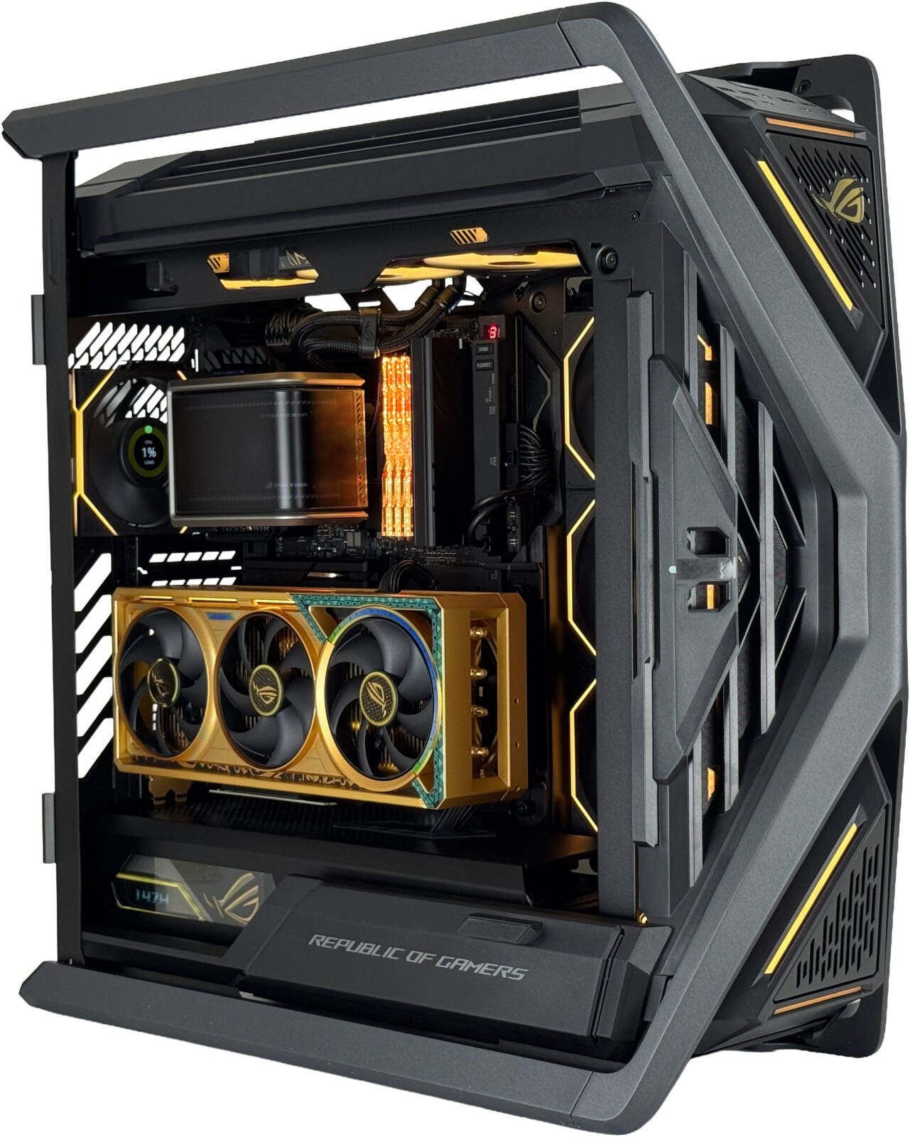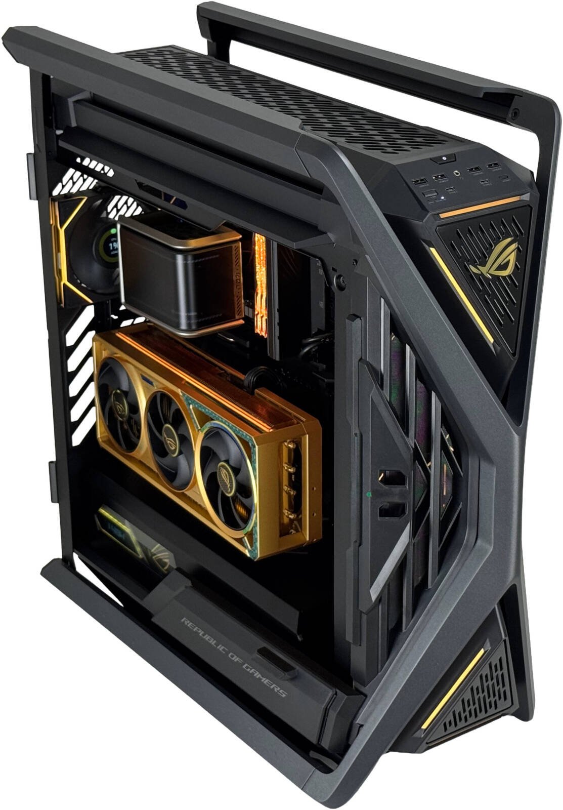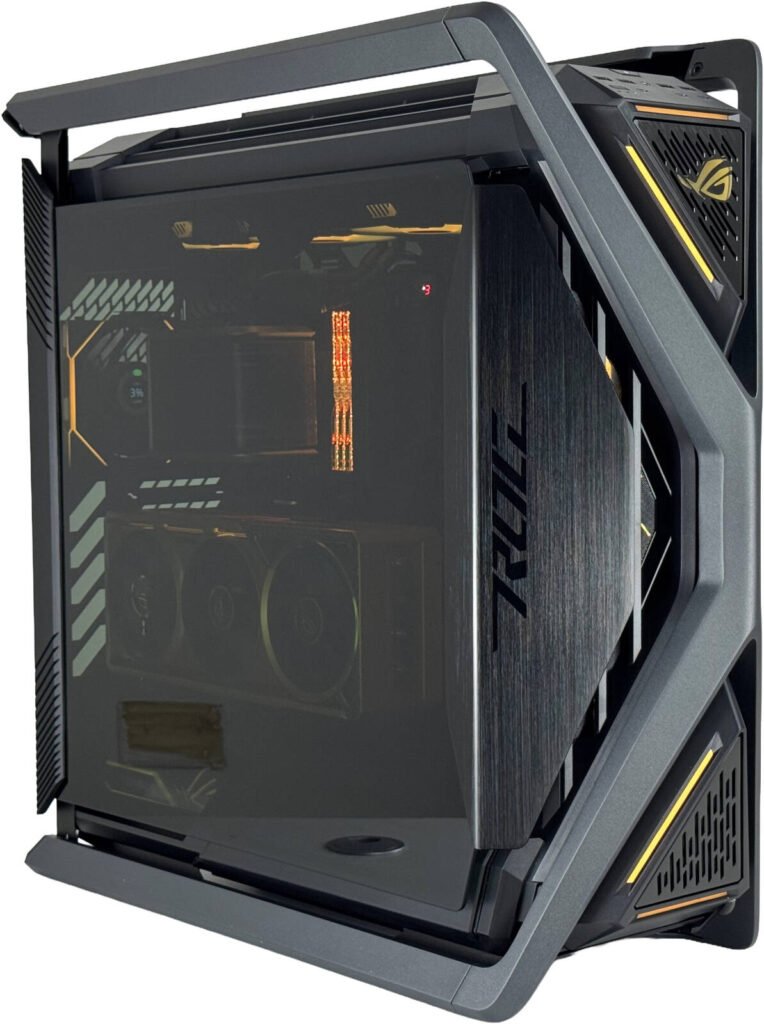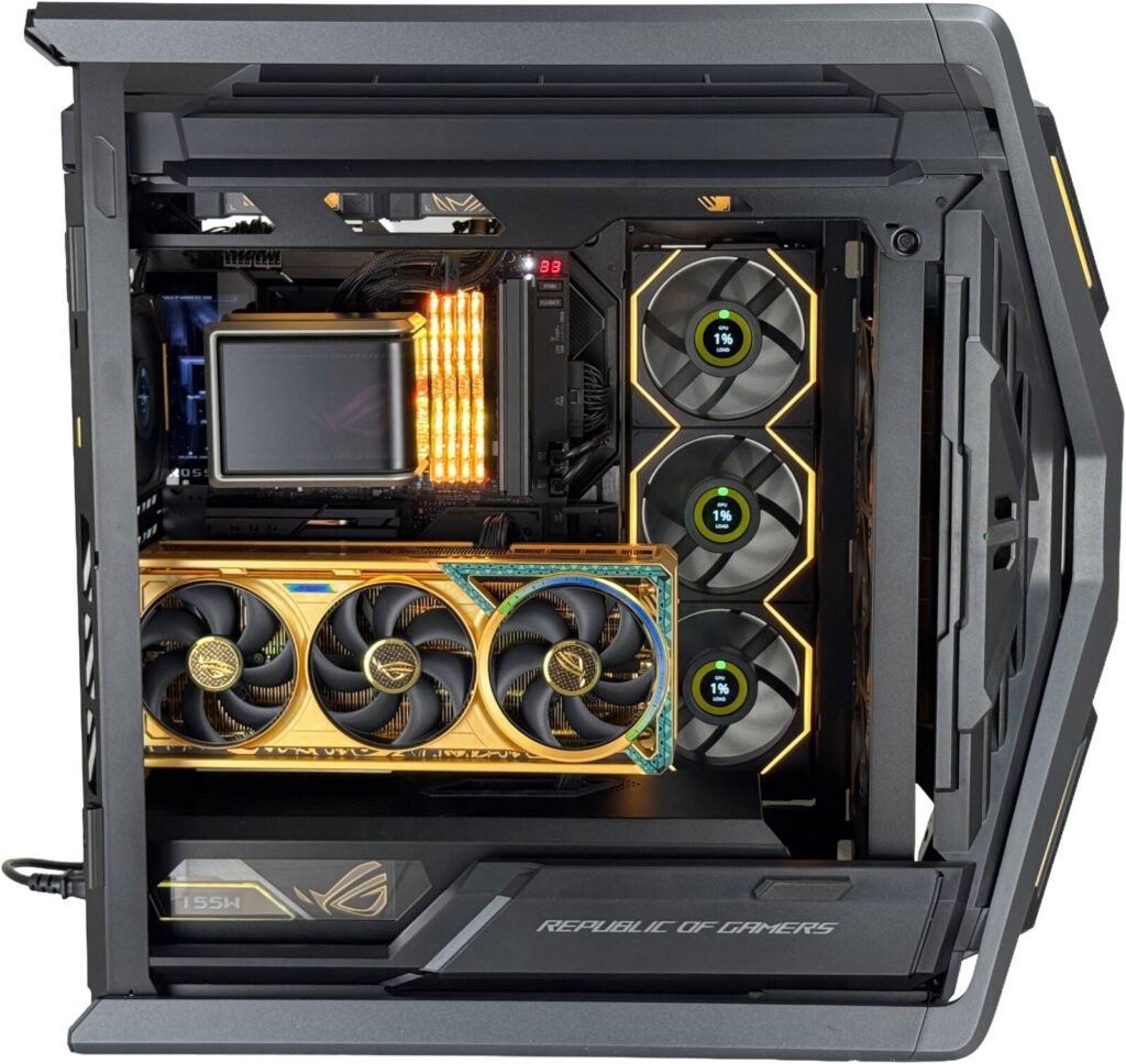 ASUS ROG Hyperion GR701 E-ATX PC Case, Tempered Glass Side Panels, Up to 420mm Dual Radiator, 4*140mm Fans, Metal GPU Holder, Compnent Storage, ARGB Fan Hub, 60W Fast Charging, Black