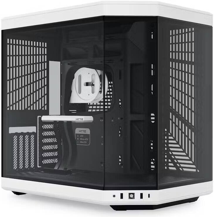 HYTE Y70 Dual Chamber Mid-Tower ATX Computer Case, Steel Frame & Glass Side Panel Materials, Up to 10 Fans & 360mm Radiator Support, 2x 3.5″ HDD/4x 2.5″ SSD, Black & White