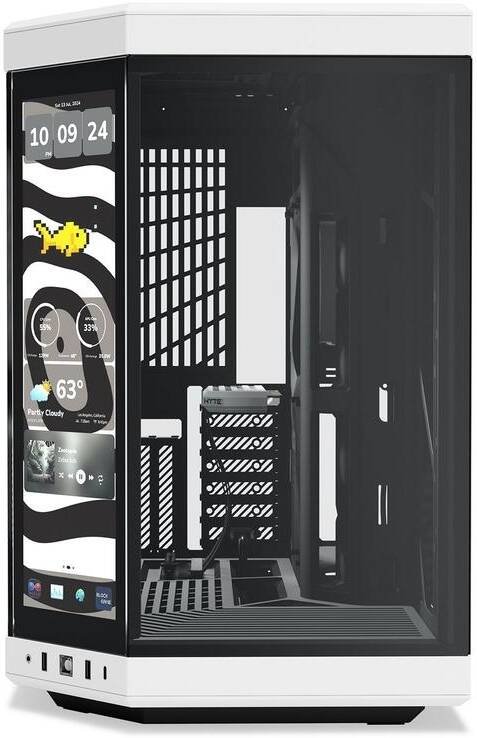 HYTE Y70 Touch Infinite Dual Chamber Mid-Tower ATX Computer Case, 14.5″ 688 x 2560 (2.5K) Touch Display, Up to 10 Fans & 360mm Radiator Support, White-Black