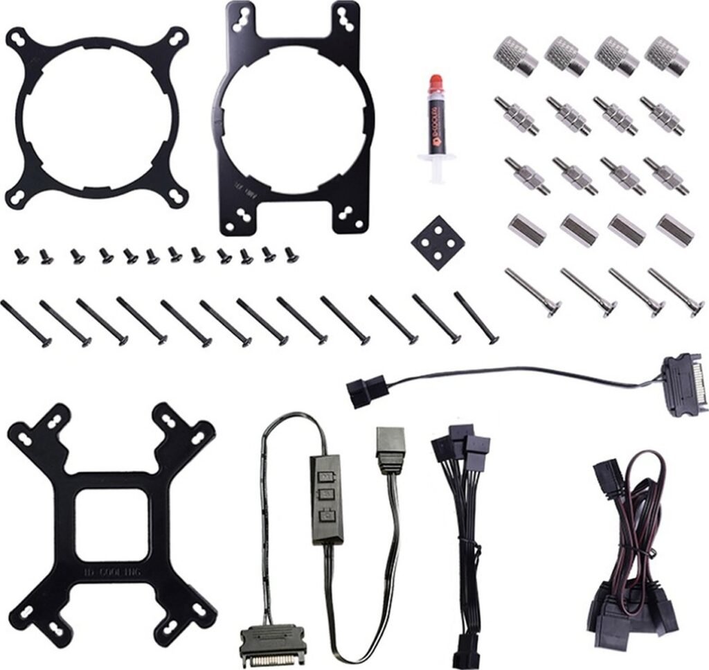The special design with an Addressable RGB LED pump head and three RGB cooling fans are adjustable to match your PC build.