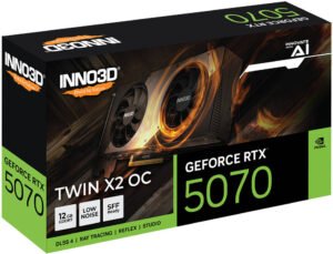 Be the first to review “Inno3D GeForce RTX 5070 TWIN X2 OC 12GB Graphics Card, GDDR7 192-Bit Memory, 2325 MHz Base Clock, 28 Gbps Memory Clock, 6144 CUDA Cores, PCI Express Gen 5”