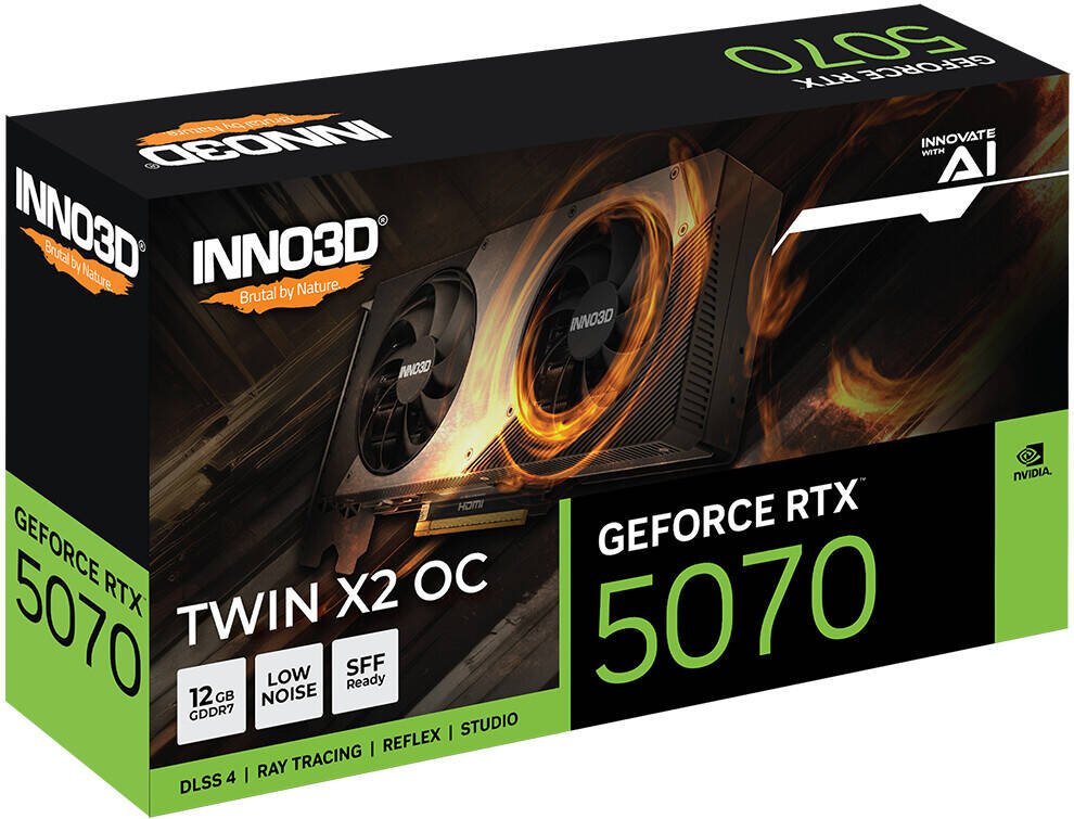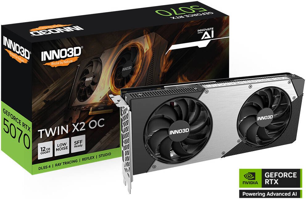 Inno3D GeForce RTX 5070 TWIN X2 OC 12GB Graphics Card, GDDR7 192-Bit Memory, 2325 MHz Base Clock, 28 Gbps Memory Clock, 6144 CUDA Cores, PCI Express Gen 5