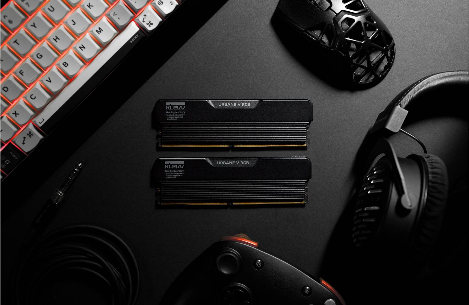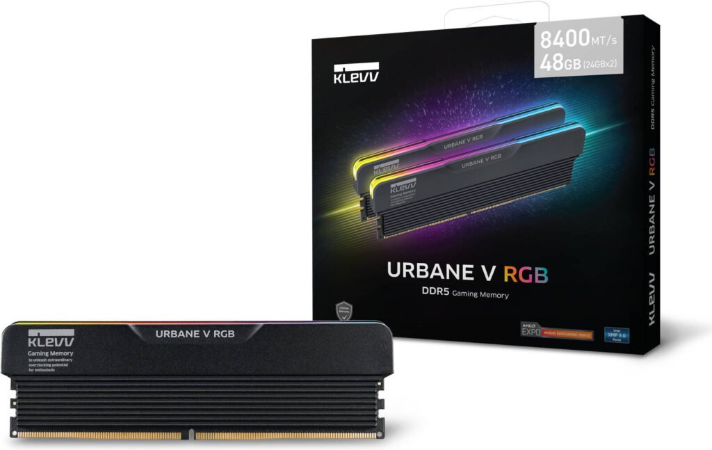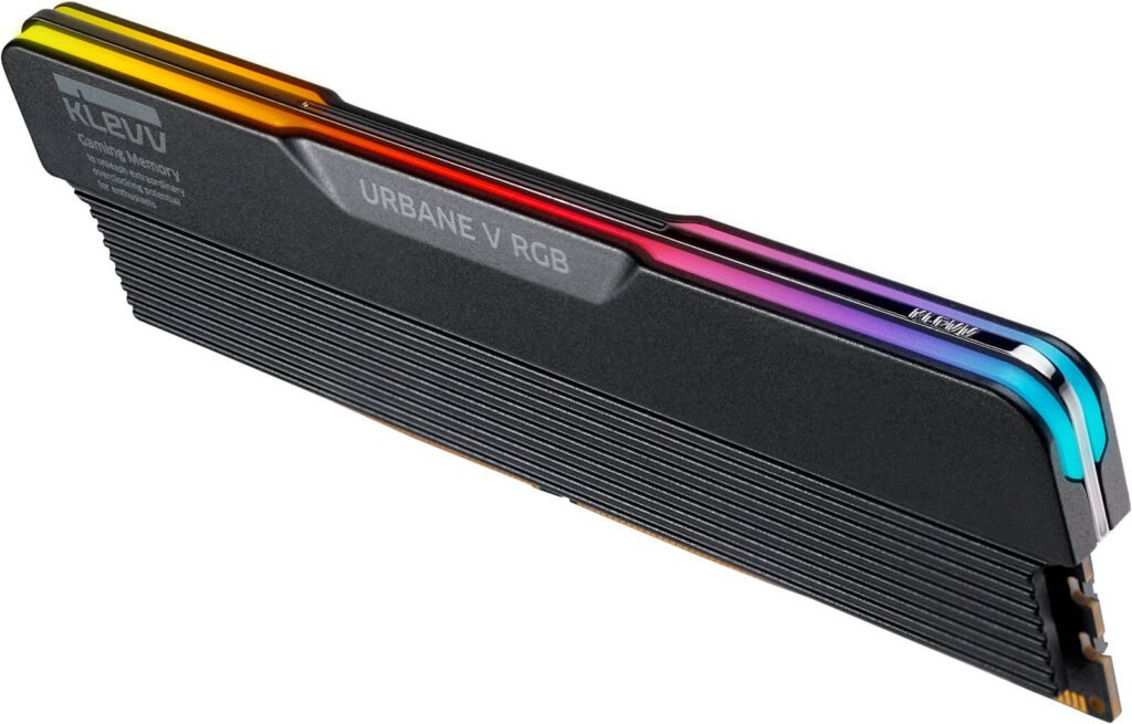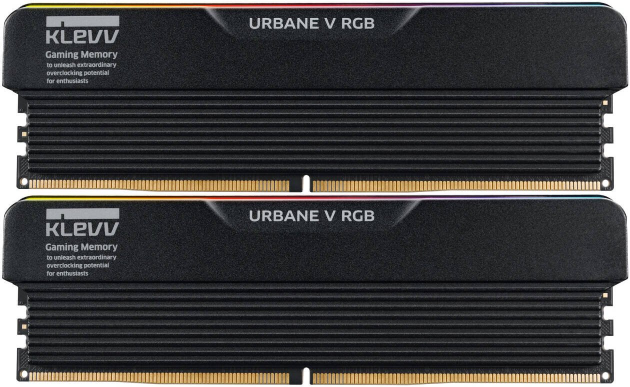 Klevv Urbane V RGB DRR5 Gaming Desktop Memory, 32GB (16GBx2) Capacity, 6400 MT/s Memory Speed, CL30 CAS Latency, 1.35 Voltage, Intel XMP 3.0, Jet Black