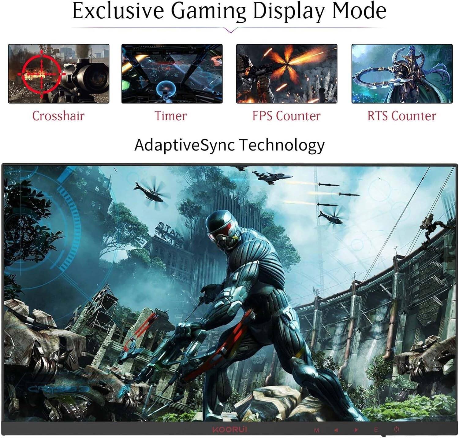 Koorui 24E4 Gaming Monitor, 24″ FHD VA Display, 165Hz Refresh Rate, 16 9 Aspect Ratio, 1ms (MPRT) Response Time, AdaptiveSync technology, 85% DCI-P3 Color Gamut, VESA Compatible, Black