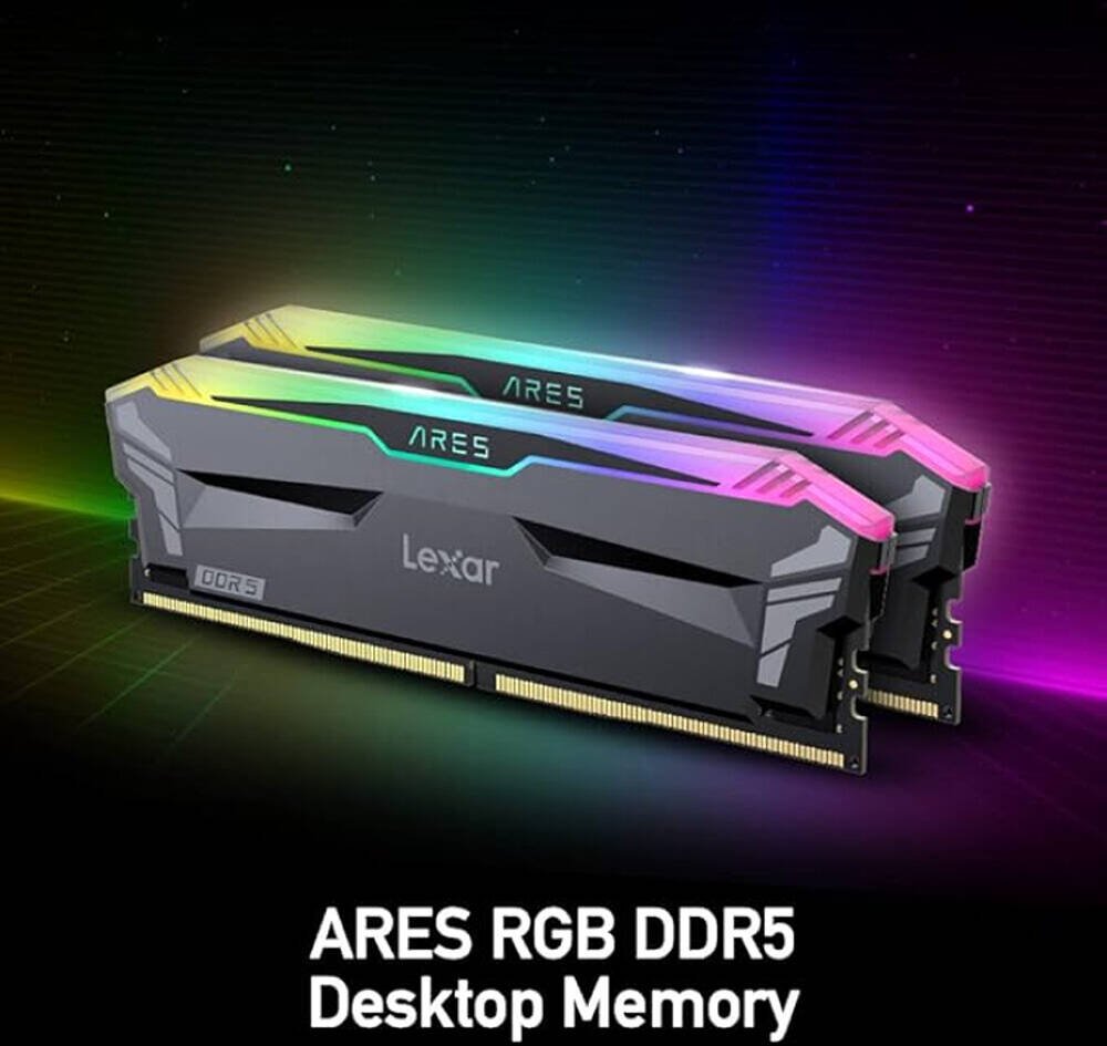 Lexar Ares RGB DDR5 Desktop Memory, 32GB (2x 16GB) Capacity, 6400 MHz Memory Speed, CL32 CAS Latency, 1.4 Voltage, 288-Pin, Support Intel XMP 3.0 & AMD EXPO