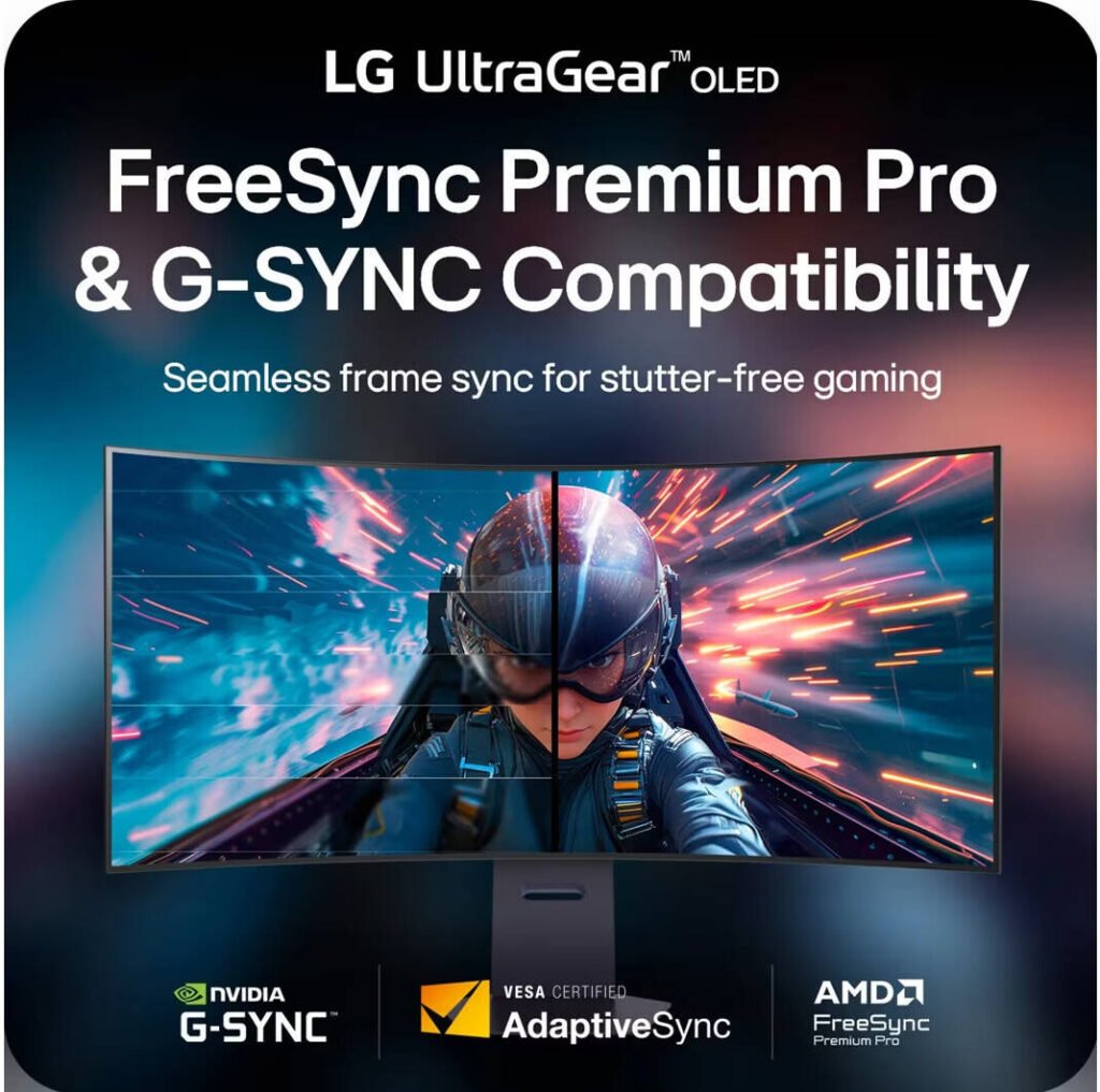 LG 45GX950A UltraGear Gaming Monitor, 45″ OLED Display, 5K2K (5120 x 2160) Resolution, 165Hz Refresh Rate, 0.03ms (GtG) Response Time, AMD FreeSync Premium Pro & NVIDIA G-Sync Technology