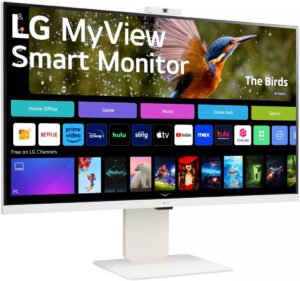LG MyView 32SR85U-W Smart Monitor, 32″ IPS Display, 4K UHD Resolution, 60Hz Refresh Rate, 5ms (GtG) Response Time, HDR10, Flicker Safe Features, 1.07b Color Depth, White