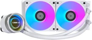 Lian Li Galahad II Trinity Liquid CPU Cooler, 240mm Radiator, 2x 120mm Fans, 3200RPM Pump Speed, 79.9CFM Fan Airflow, 2450RPM Fan Speed, Fluid Dynamic Bearing, White