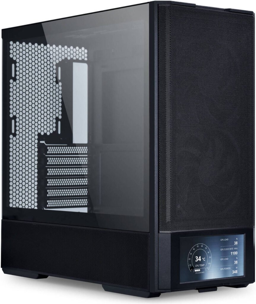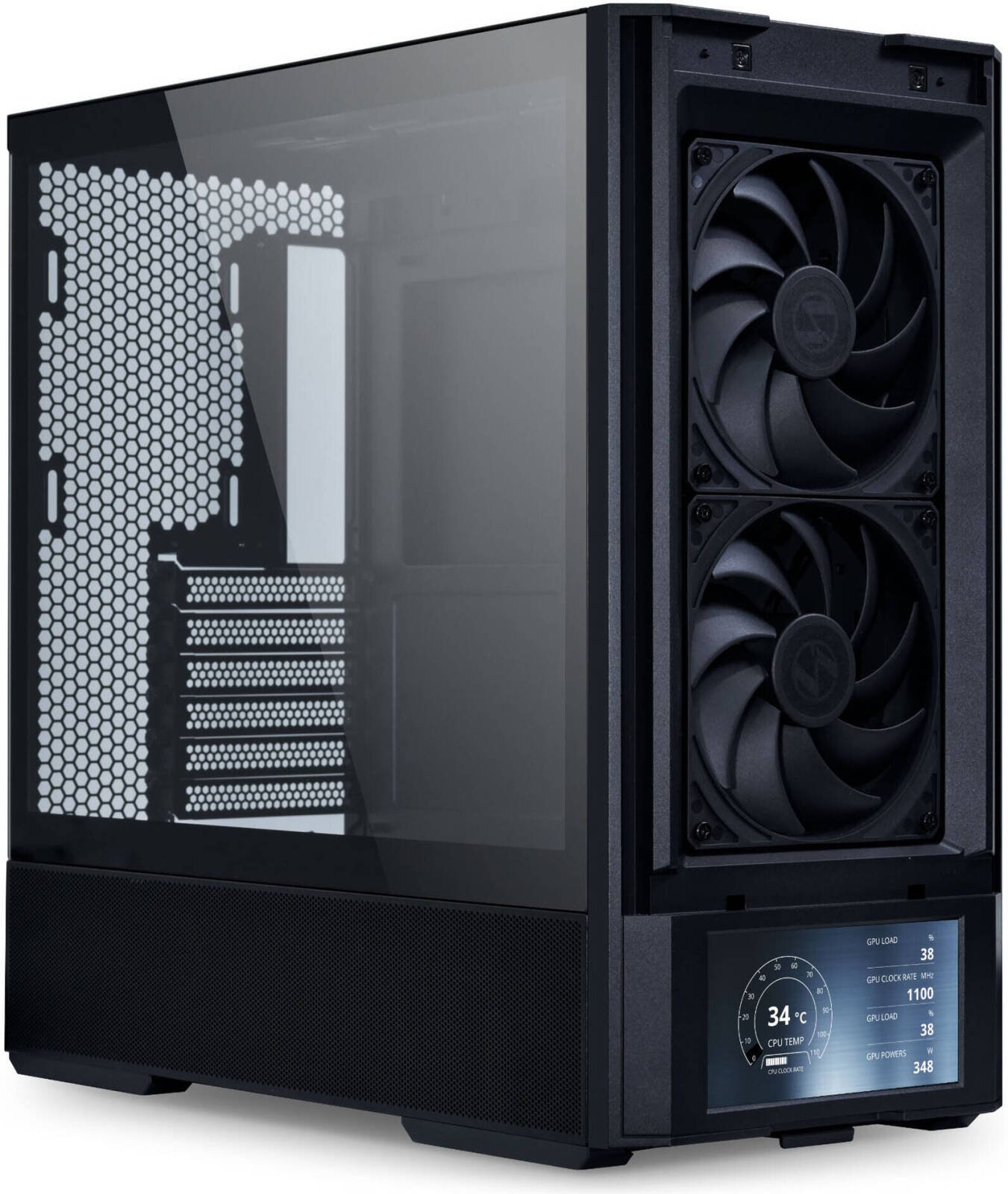 Lian-Li Lancool 207 Digital Mid Tower, 6″ 700 x 1600 60Hz Display, Pre-Installed 2x 140mm & 2x 120mm Fans, Up to 360mm Radiator & 8x Fan Support, Steel / 4.0mm Tempered Glass, Black