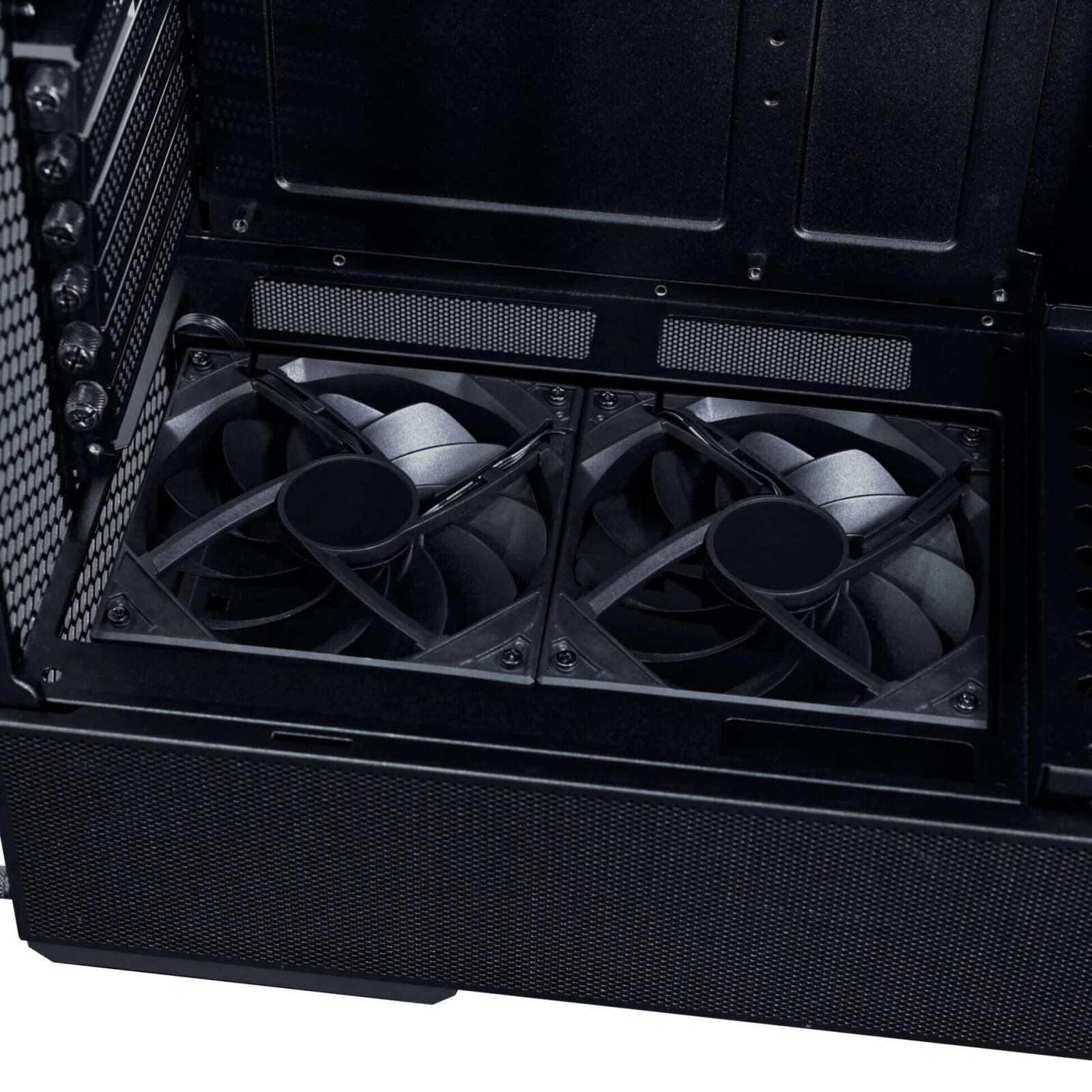 - Motherboard tray position redesigned slightly lower into the PSU shroud with two bottom fans placed directly under the GPU for better cooling