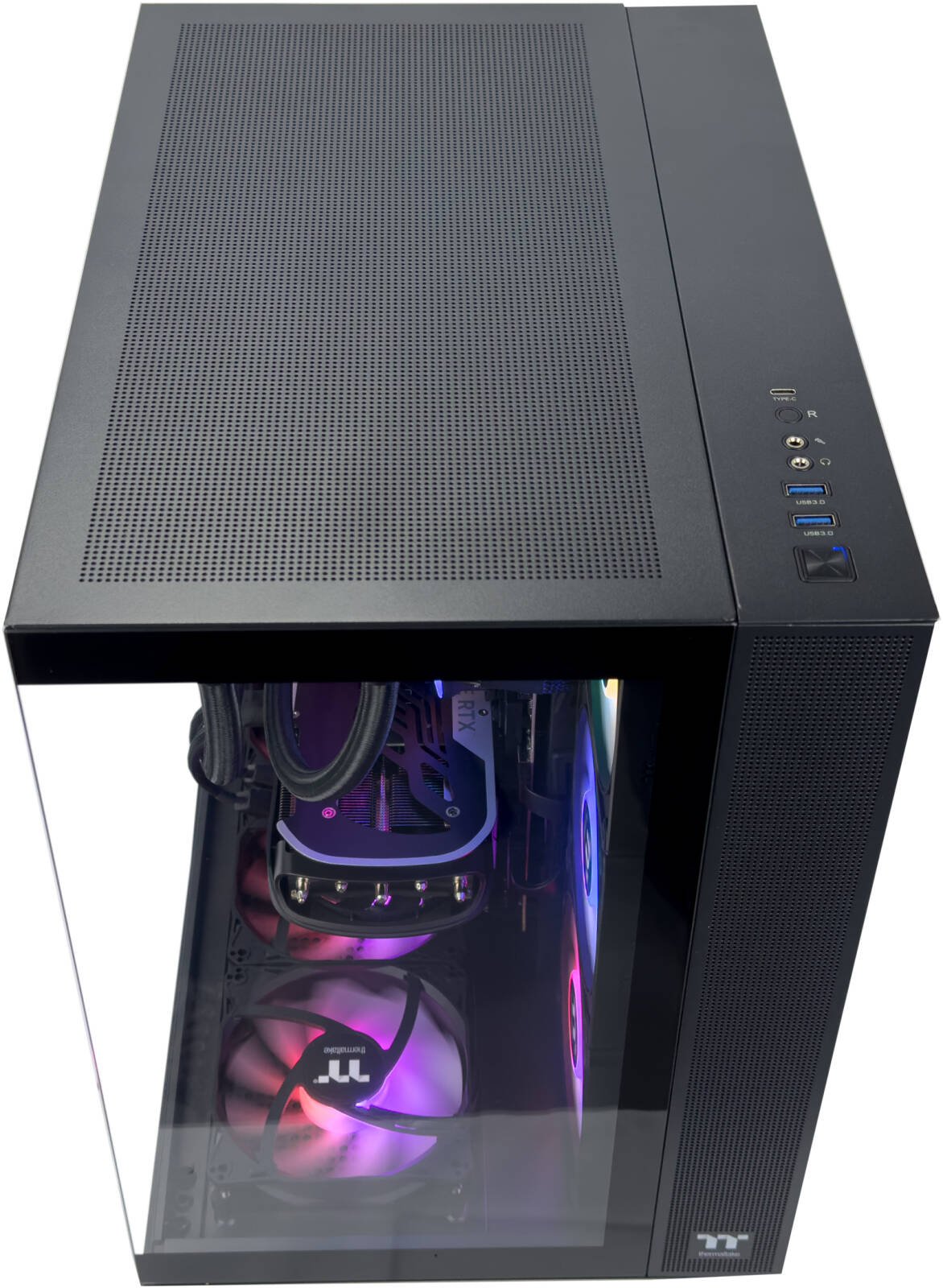 Thermaltake View 380 TG ARGB Mid Tower Computer Case, 4x 120mm ARGB Lite Pre-Installed Lite Fans, Up to 360mm Radiator & 10x Fan Support, USB-C x1, USB 3.0 x2, HD Audio x1, Black