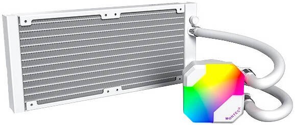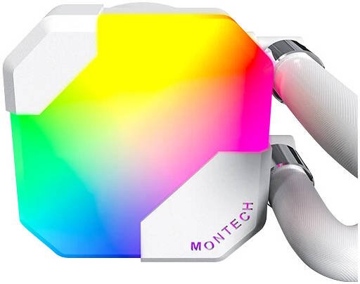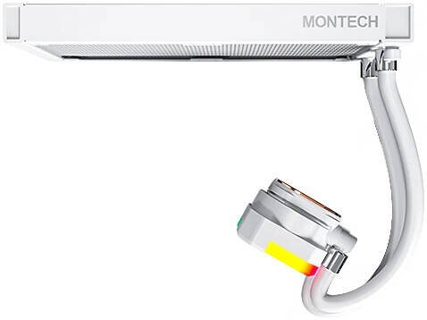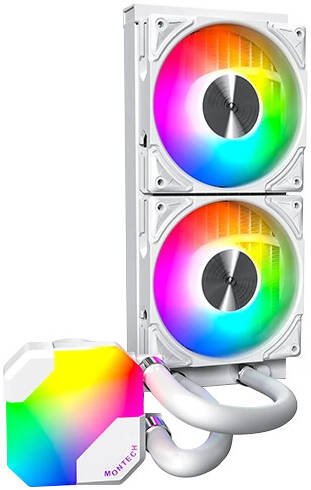 Montech HyperFlow ARGB 240 AIO Liquid CPU Cooler, 240mm Radiator, 2x 120mm aRGB Pre-Installed Fans, 3100 RPM Fan Speed, 76.2 CFM Fan Airflow, Fluid Dynamic Bearing, White