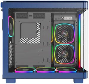 Montech KING 95 PRO ATX Computer Case, 6x Pre-Installed Fans, Up to 360mm Radiator Support, 9x Fan Support, Premium Mesh Panel, Quick-Release Glass Panel, Prussian Blue