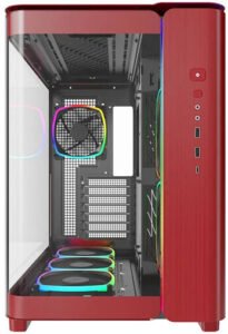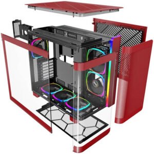 Montech KING 95 PRO ATX Computer Case, 6x Pre-Installed Fans, Up to 360mm Radiator Support, 9x Fan Support, Premium Mesh Panel, Quick-Release Glass Panel, Vibrant Red