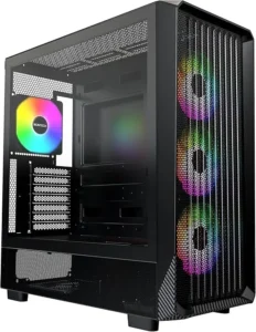 Montech X5- ATX Mid-Tower Gaming PC Case, High Airflow, 3X 140mm and 1x 120mm ARGB Fans Pre-Installed, Glass Side Panel, Carbon Print Accents, GPU Holder Included