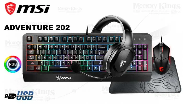 MSI Adventure 202, Vigor GK20 Keyboard,GM08 Gaming Mouse, GH20 Headphones,GD21 Gaming Mouse Pad, Black