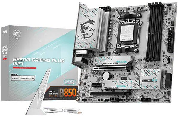 MSI B850M GAMING PLUS WIFI AM5 mATX Motherboard, AMD B850 Chipset, 4x DDR5 UDIMM, Up to 256GB Max Memory, 1x PCI-E x16 Support, 2x M.2 Slot, White