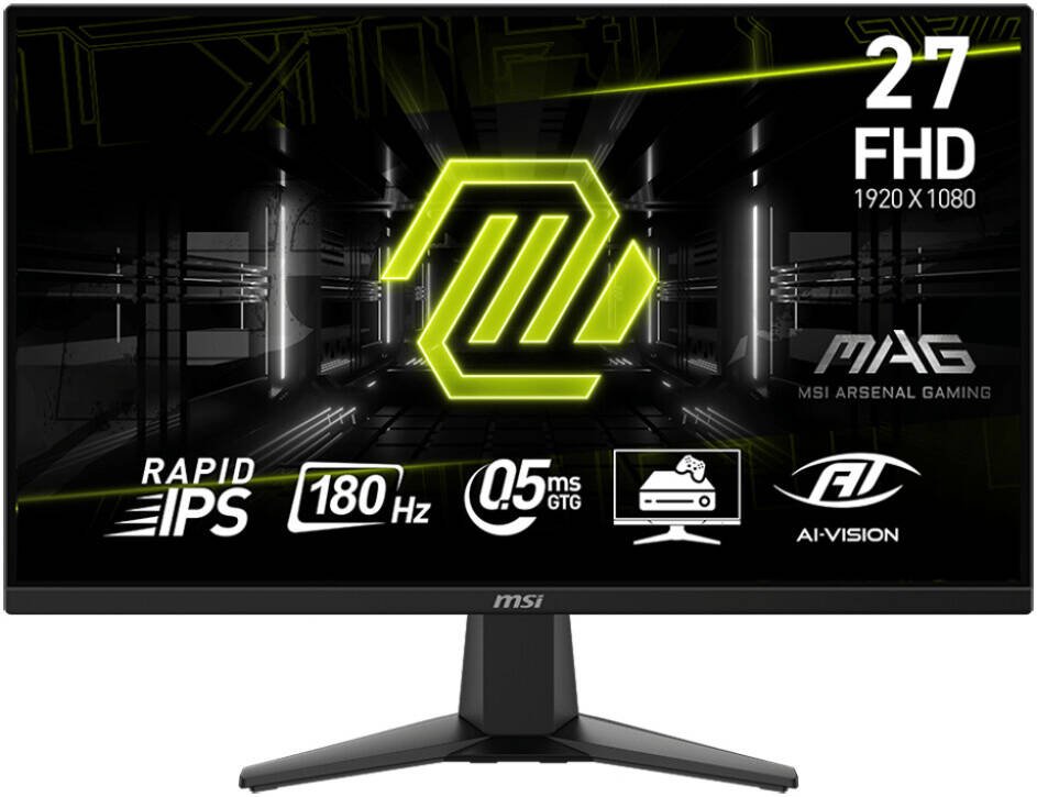 MSI MAG 275F Gaming Monitor, 27″ Rapid IPS Display, FHD Resolution, 180Hz Refresh Rate, 0.5ms (GtG) Response Time, Adaptive Sync Technology, 1.07b Color Support, Anti-Flicker, Black