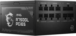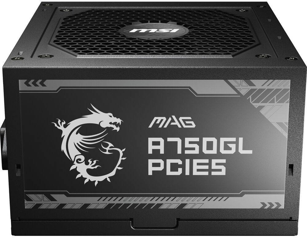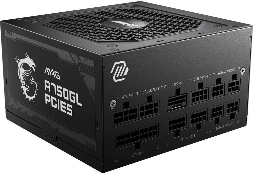 MSI MAG A750GL PCIE5 750W Modular Power Supply, Intel ATX12V Version 3.0, 120mm Cooling Fan, 80 Plus Gold Efficiency Rating, 4 x PCIe 6+2-Pin Connectors, 8 x SATA Connectors, Black