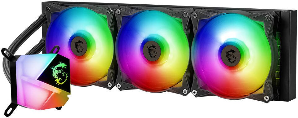MSI MAG Coreliquid C360 CPU Liquid Cooler, Compatible with Intel Socket LGA1700, 360mm Radiator Size, 78.73 CFM Fan Airflow, Two Ball Bearing, 4pin PWM, 2000 RPM Speed, ARGB, Black