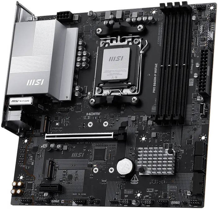 MSI PRO B840M-P WIFI6E mATX AM5 Motherboard, AMD B840 Chipset, 4x DDR5 UDIMM Slots, Up to 256GB Max Memory, 1x PCIe x16, 2x M.2 Slots