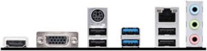 | Back Panel Ports | HDMI™, VGA, PS/2 Keyboard/Mouse, USB 3.2 Gen 1 Type-A, USB 2.0, LAN, Audio Connectors |