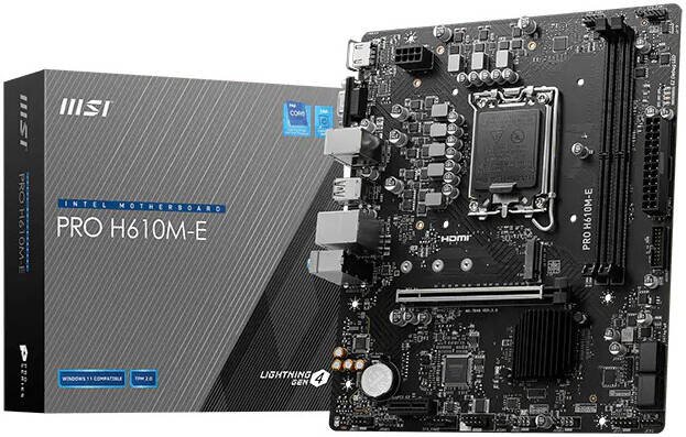 MSI PRO H610M-E LGA 1700 Micro ATX Motherboard, Intel H610 Chipset, 2x DDR5 DIMM Slots, 96GB Max Memory, 1x PCIe 4.0 x16, 1x M.2 Slot, 4x SATA 6G Slots