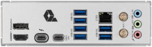 | Back Panel Ports | DisplayPort, HDMI™, USB 5Gbps Type-A, 2.5G LAN, Wi-Fi/Bluetooth, Thunderbolt™ 4, USB 20Gbps Type-C, Audio Connectors |