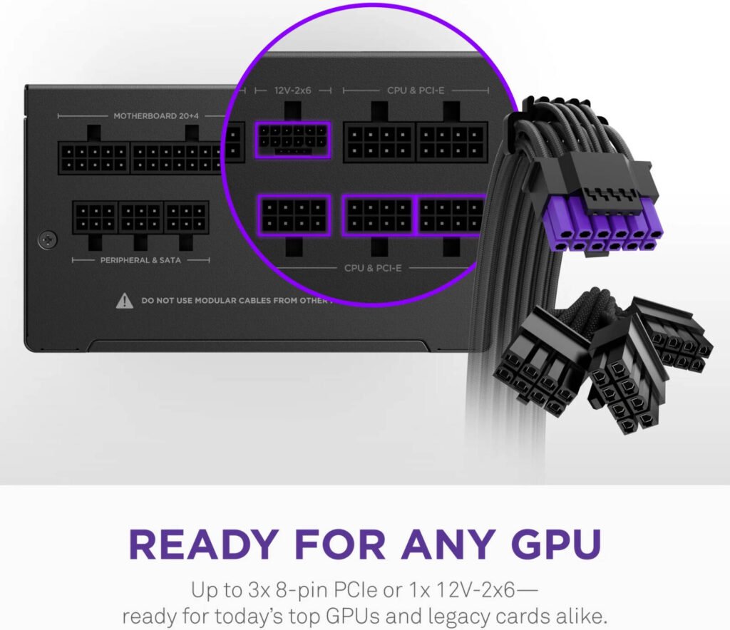 - Ready for AMD & NVIDIA GPUs: Compatible with most GPUs using a 12V-2×6 cable or up to three 8-pin PCIe cables.