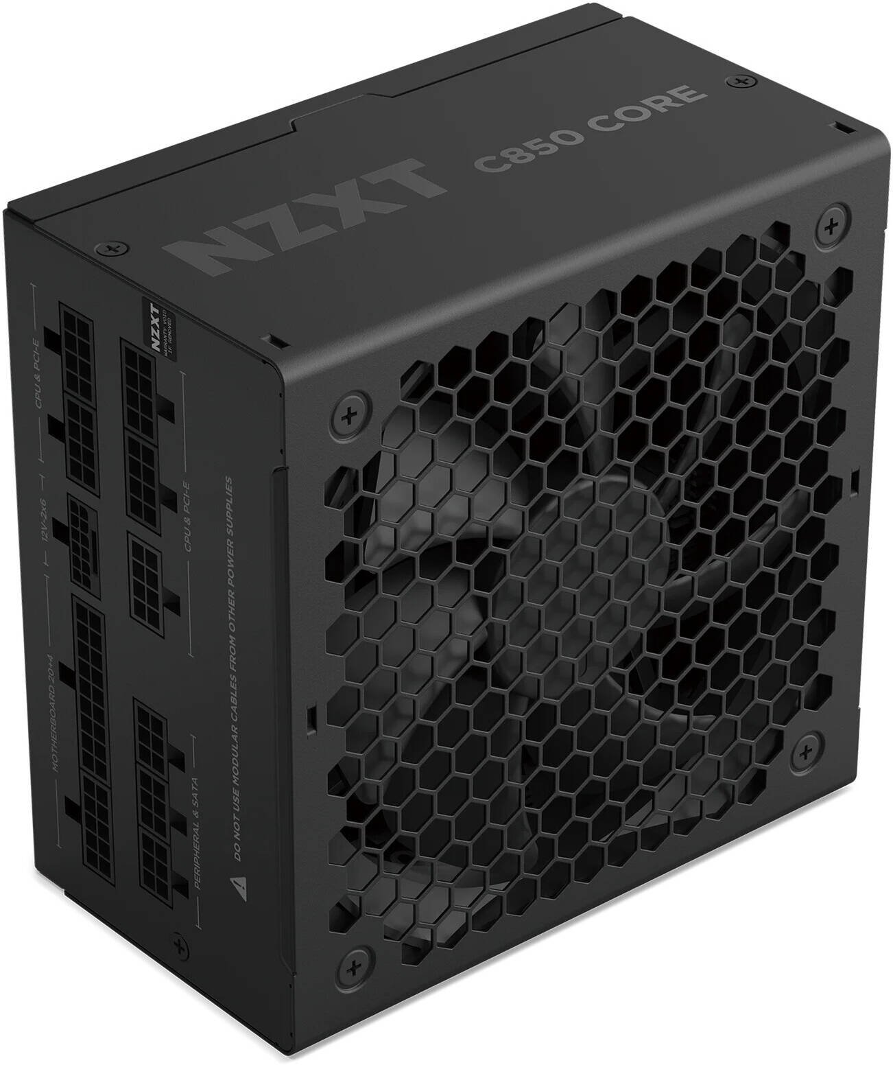 NZXT C850 Gold Core Fully Modular Power Supply, 850W Power, 80 Plus Gold Efficiency, 2,300 RPM Fan Speed, 103.36 CFM Airflow, 135mm Fan, Fluid Dynamic Bearing, ATX 3.1, Black