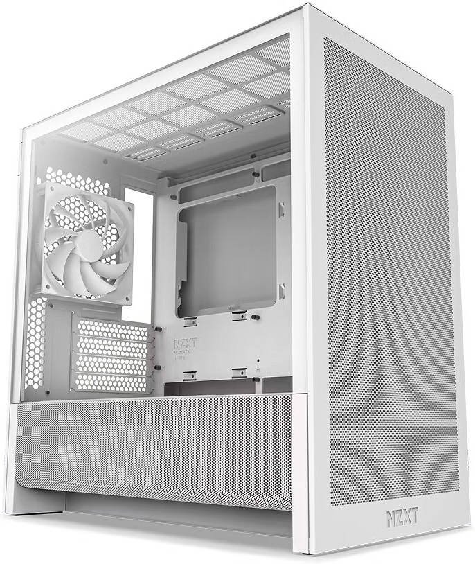 NZXT H3 Flow, Micro-ATX Mid-Tower PC Case High Airflow Design, Tempered Glass Side Panel, Compact Form Factor, Front I/O with USB-C and USB 3.2 Gen 1, White