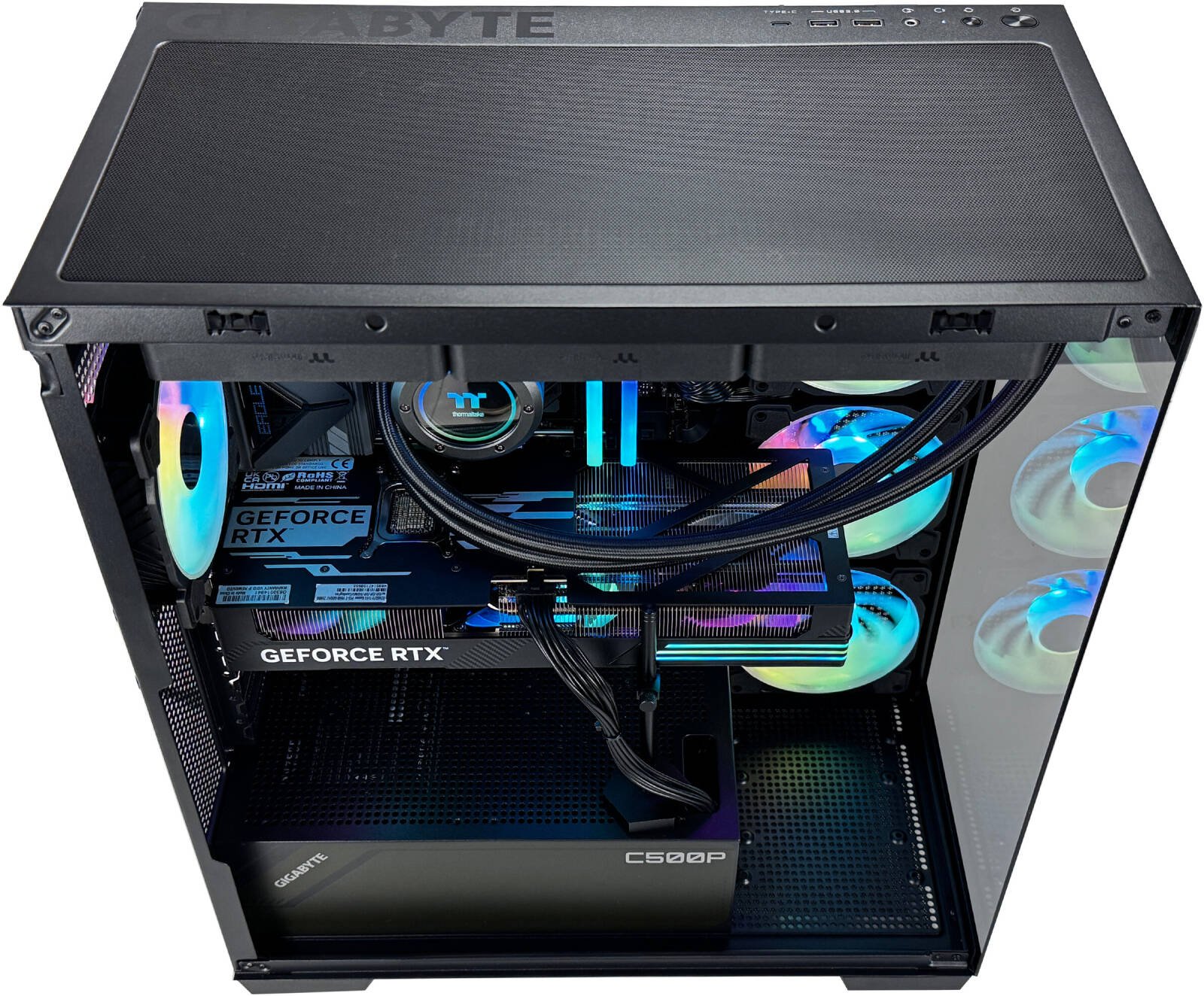 GIGABYTE C500 ATX Computer Case, 410MM/BL ST ATX GPU, Mid Tower Form Factor, RGB Lighting, 3.5" Drive Support, Pre-installed Fan, Built-In Cable Management, Black