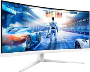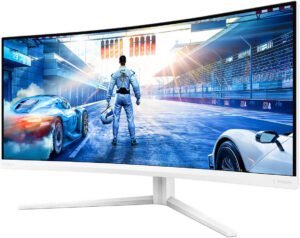 Philips Evnia 5000 Gaming Curved Monitor, 34″ VA Display, WQHD Resolution, 180Hz Refresh Rate, 1ms (GtG) Response Time, 1500R Curvature, SmartImage Game Enhancement, White