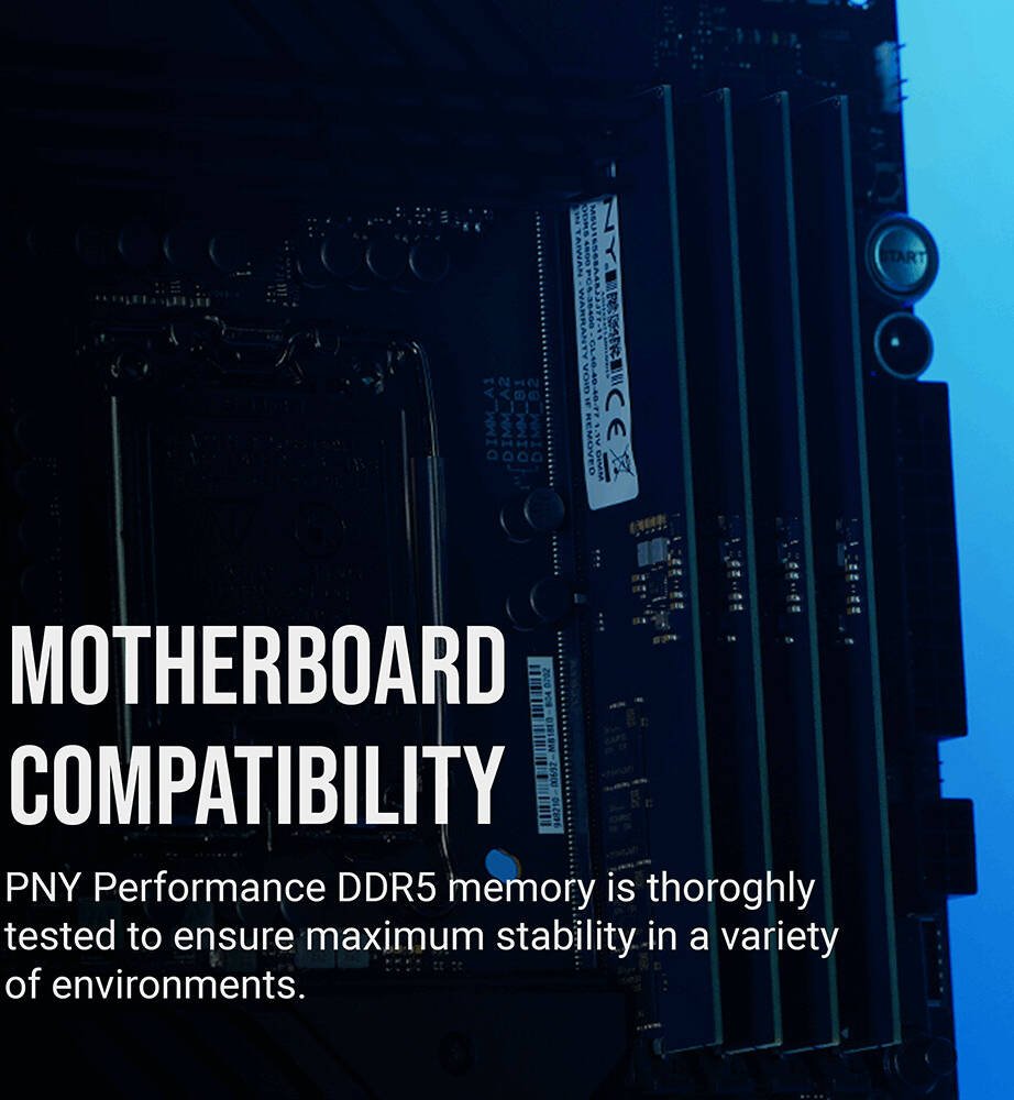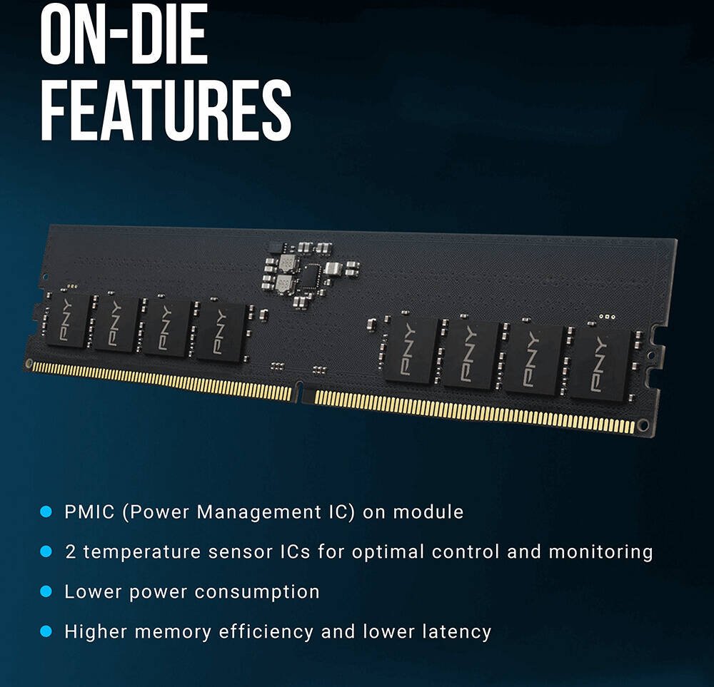 PNY Performance DDR5 Desktop Memory, 16GB Capacity, 4800MHz Speed, CL40 CAS Latency, 1.1 Voltage, ECC Unbuffered, Black