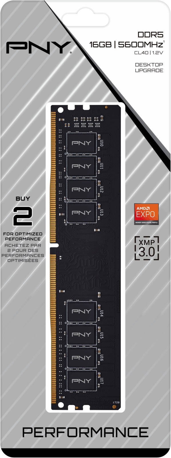 PNY Performance DDR5 Desktop Memory, 16GB Capacity, 5600MHz Speed, CL40 CAS Latency