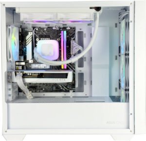 It features a premium 240mm ARGB liquid cooling system for efficient heat dissipation & is ideal for gaming and multitasking under load.