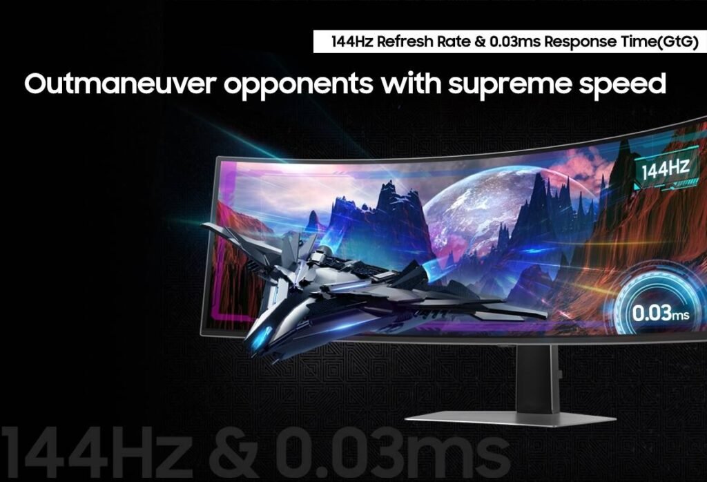 SAMSUNG Odyssey G91SD G9 Gaming Curved Monitor, 49″ OLED Display, DQHD Resolution, 144Hz Refresh Rate, 0.03ms Response Time, AMD FreeSync Premium Pro, White