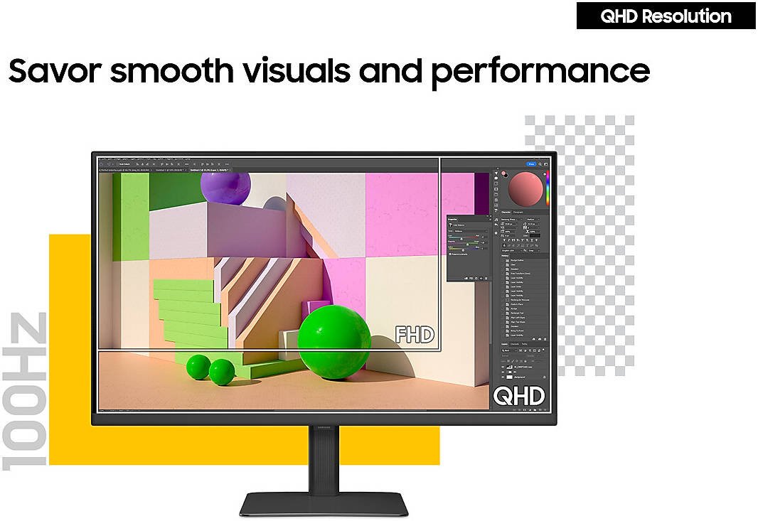 SAMSUNG S60D 24″ QHD ( 2560×1440 ) IPS ViewFinity High Resolution Flat Monitor, 100 Hz Refresh Rat & 5ms Response, 1.07BN Colors with HDR10, Easy Setup Stand & Ergonomic Design, Black