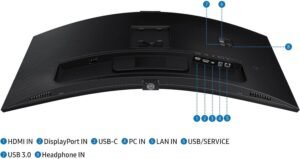 SAMSUNG S65VC Webcam Business Monitor, 34″ VA Ultra WQHD, 100Hz Refresh Rate, 5ms Response Time, 1000R Curvature, Adaptive Picture, 5MP, IR camera, Integrated Speakers, Black