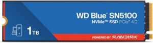Sandisk WD Blue SN5100 Internal Solid State Drive, 1TB Capacity, 7100MB/s Read & 6700MB/s Write Sequential Speed, PCIe Gen 4.0, M.2 2280 Form Factor, Blue