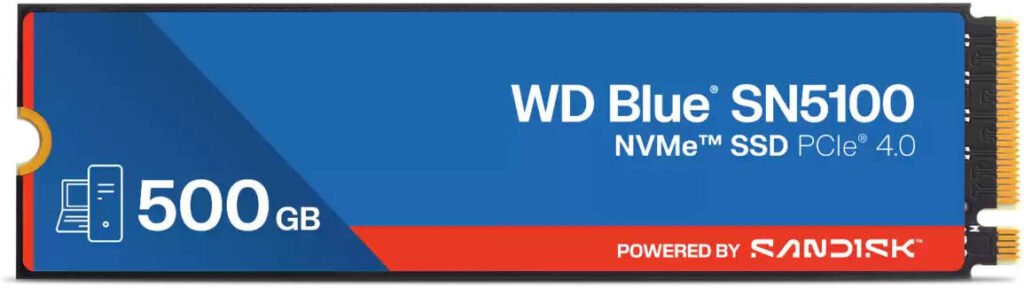 Sandisk WD Blue SN5100 Internal Solid State Drive, 500GB Capacity, 6600MB/s Read & 5600MB/s Write Sequential Speed, PCIe Gen 4.0, M.2 2280 Form Factor, Blue