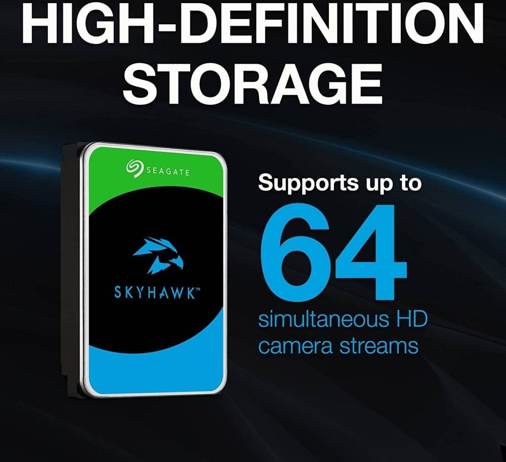 Seagate 2TB SkyHawk Surveillance SATA III 3.5″ Internal Hard Drive, 256MB Cache, 5400 RPM, Up to 180 MB/s Sustained Transfer Rates, 1 Million Hours MTBF, Supports up to 64 HD Cameras