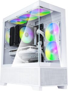 | Cooling System | Rear: 120mm × 1 (ARGB fan included) Top: 120mm × 3 / 140mm × 2 Internal (Motherboard Tray): 120mm × 2 (2 × ARGB fans included) PSU Shroud: Top: 120mm × 3, Front: 80mm × 2 |