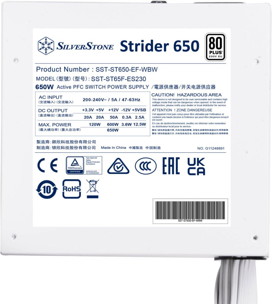 SilverStone Strider 650 Non-Modular Power Supply, 650W Power, 80 Plus Certification, Active PFC, 120mm Silent Fan, Class-Leading Single +12V Rail, ATX Form Factor, White