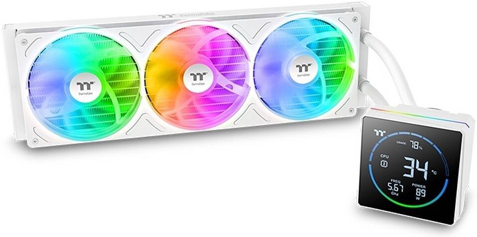 Thermaltake TH360-S V3 ARGB Sync AIO Liquid Cooler, 360mm Radiator, Single Frame Fan, 2500 RPM Fan Speed, 85.29 CFM Fan Airflow, Segment LCD Display, White